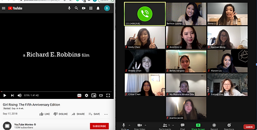 For this event, we all virtually joined together to watch a documentary that tells the stories of nine girls from developing countries who strive to become educated.
